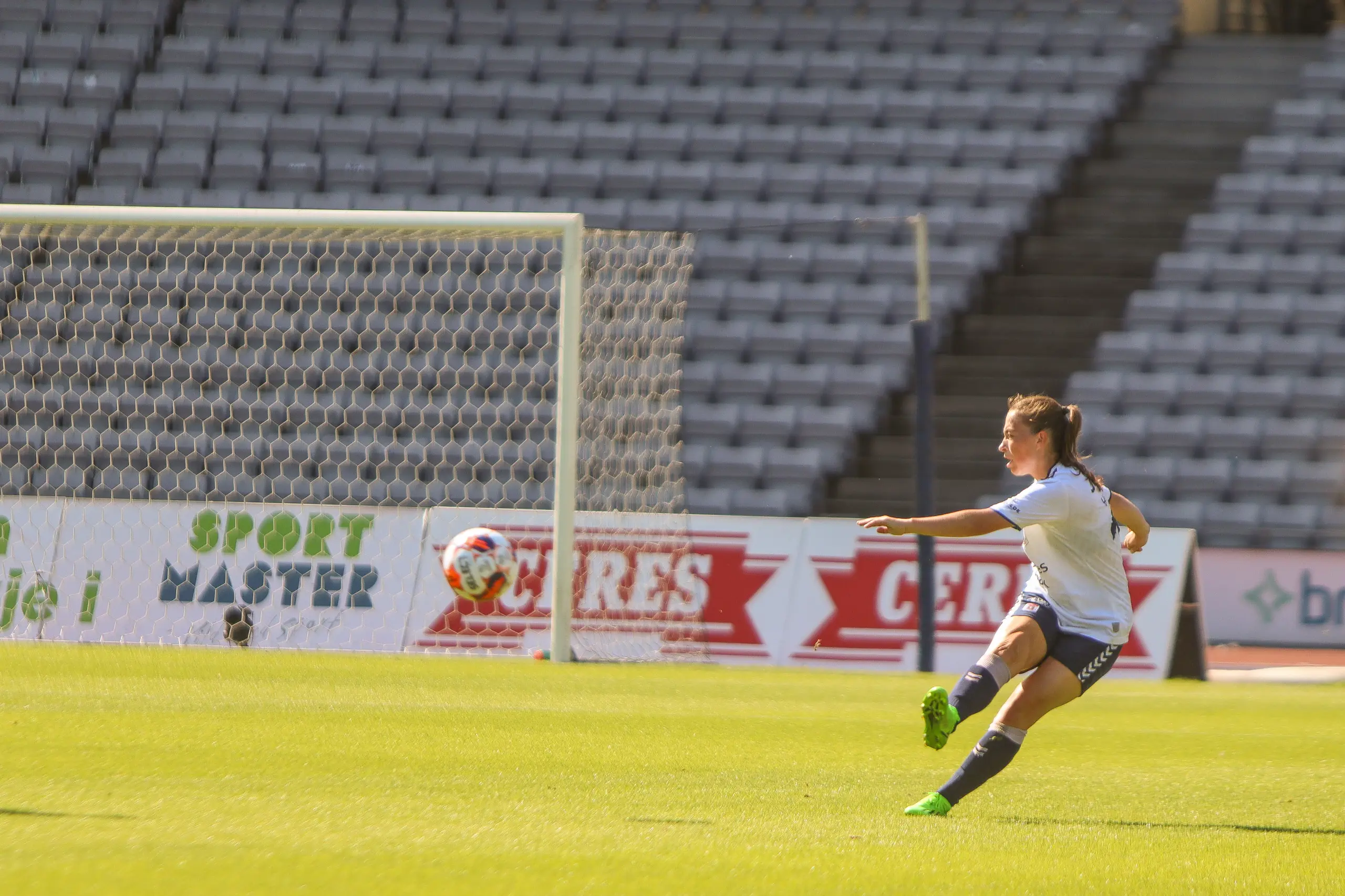 Det gav skår i glæden, der ellers hvilede over hele Ceres Park med 1512 tilskuere, der havde fundet vej dertil. På banen dominerede de gule og blå, som fik sit tag på os, jo længere ind i halvlegen vi kom. Det var få muligheder, vi spillede os frem til, og den eneste store, vi fik, var, da Sarah Dyrehauge forsøgte med et langskud. Desværre havde læderkuglen nærmere kurs mod D-tribunen snarere end målet.