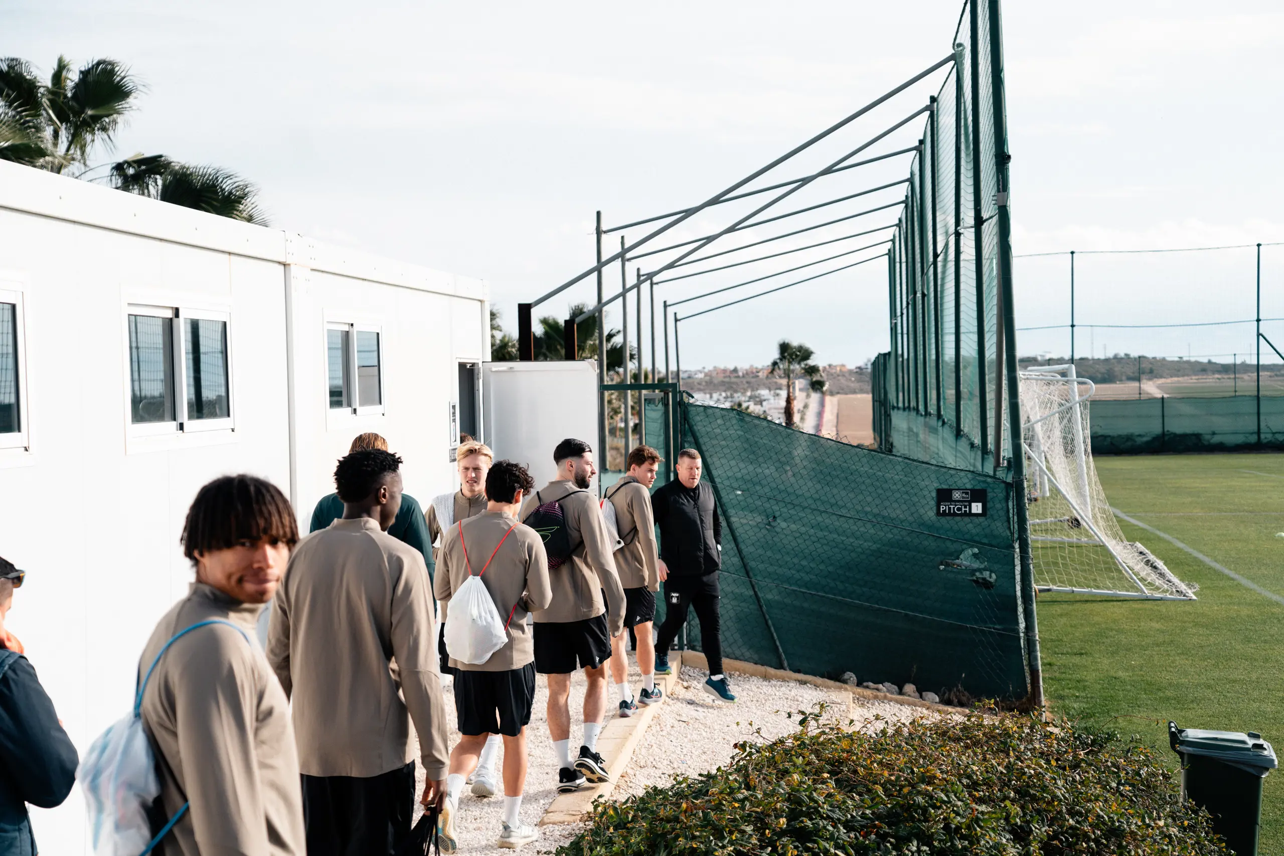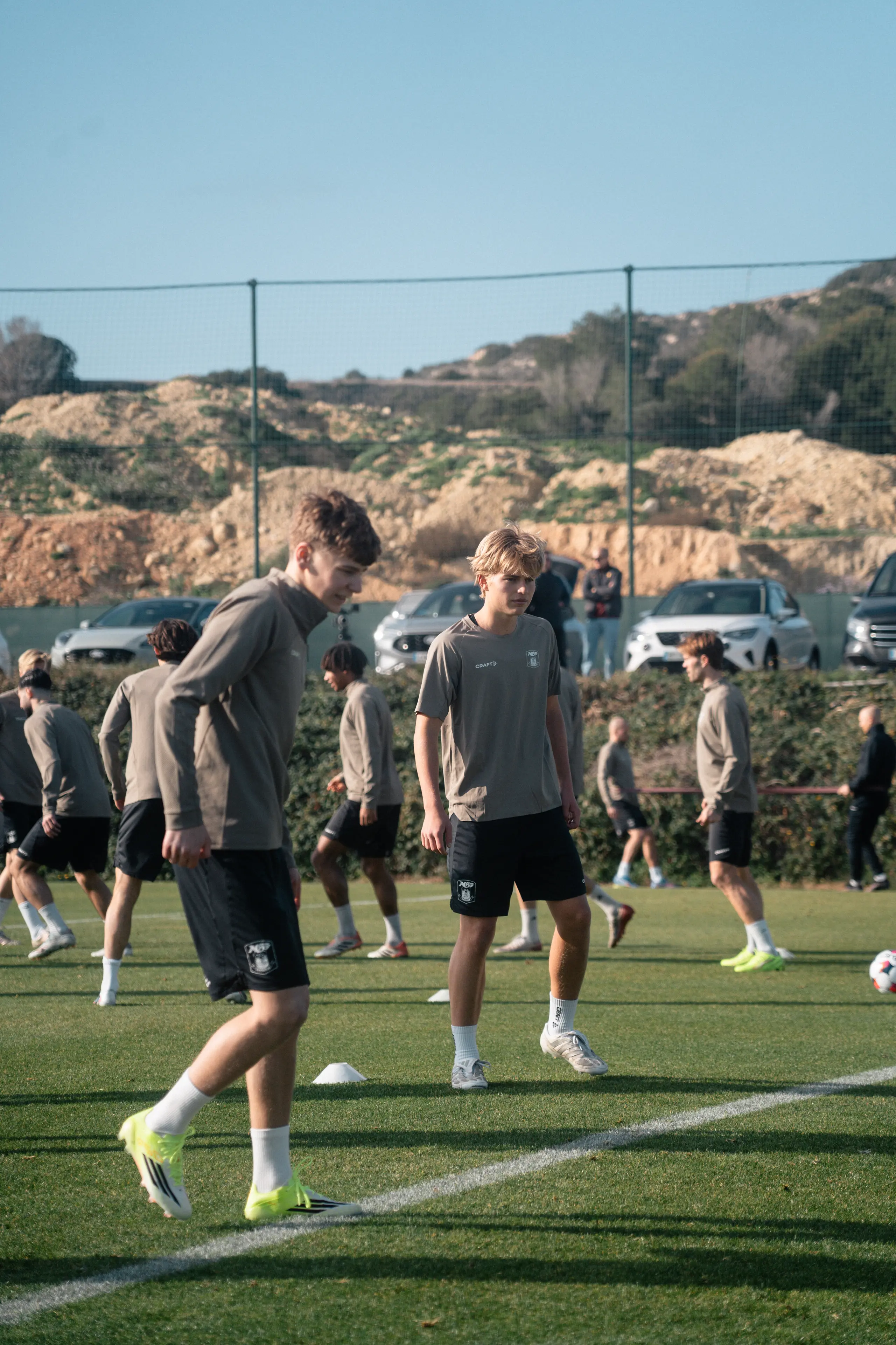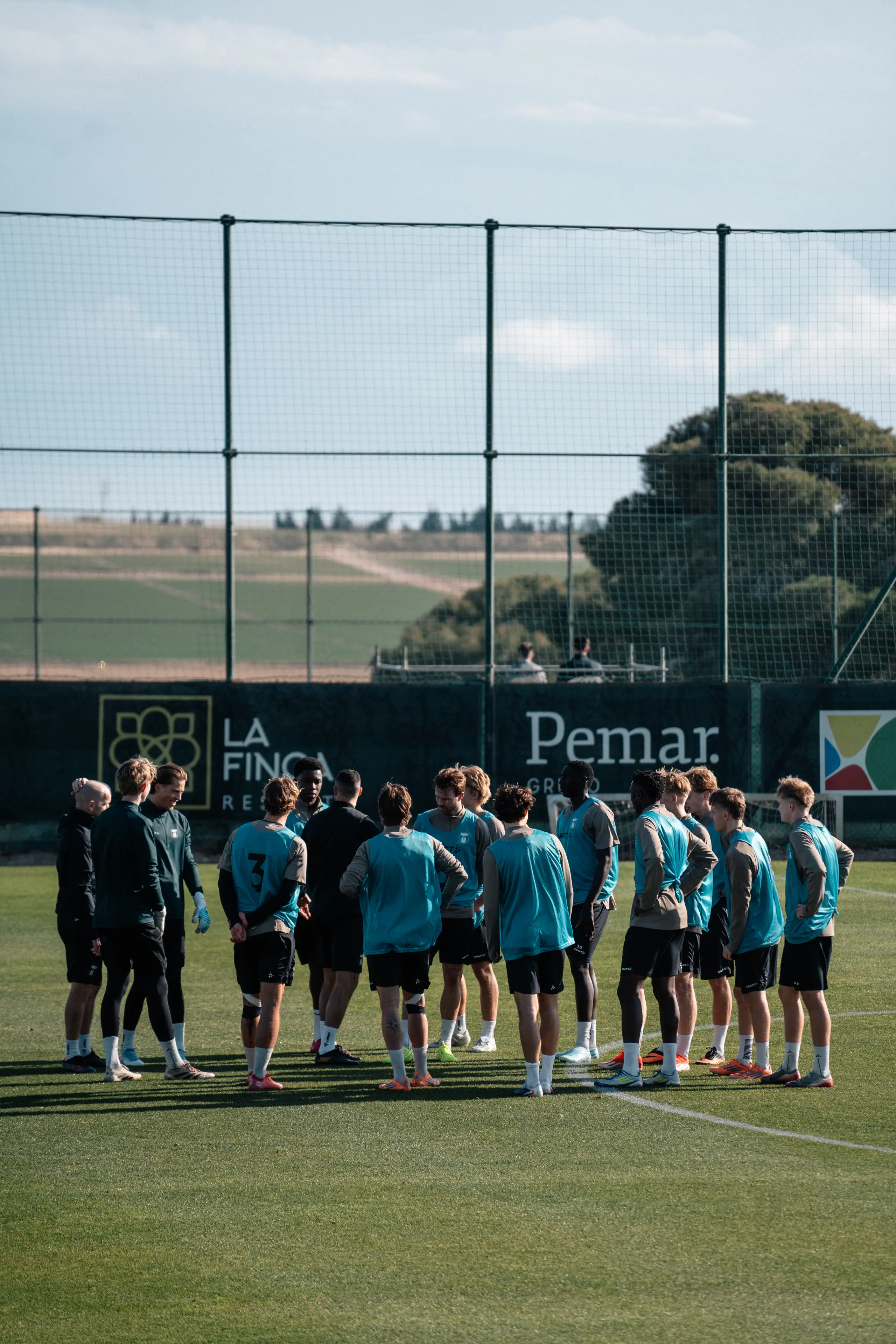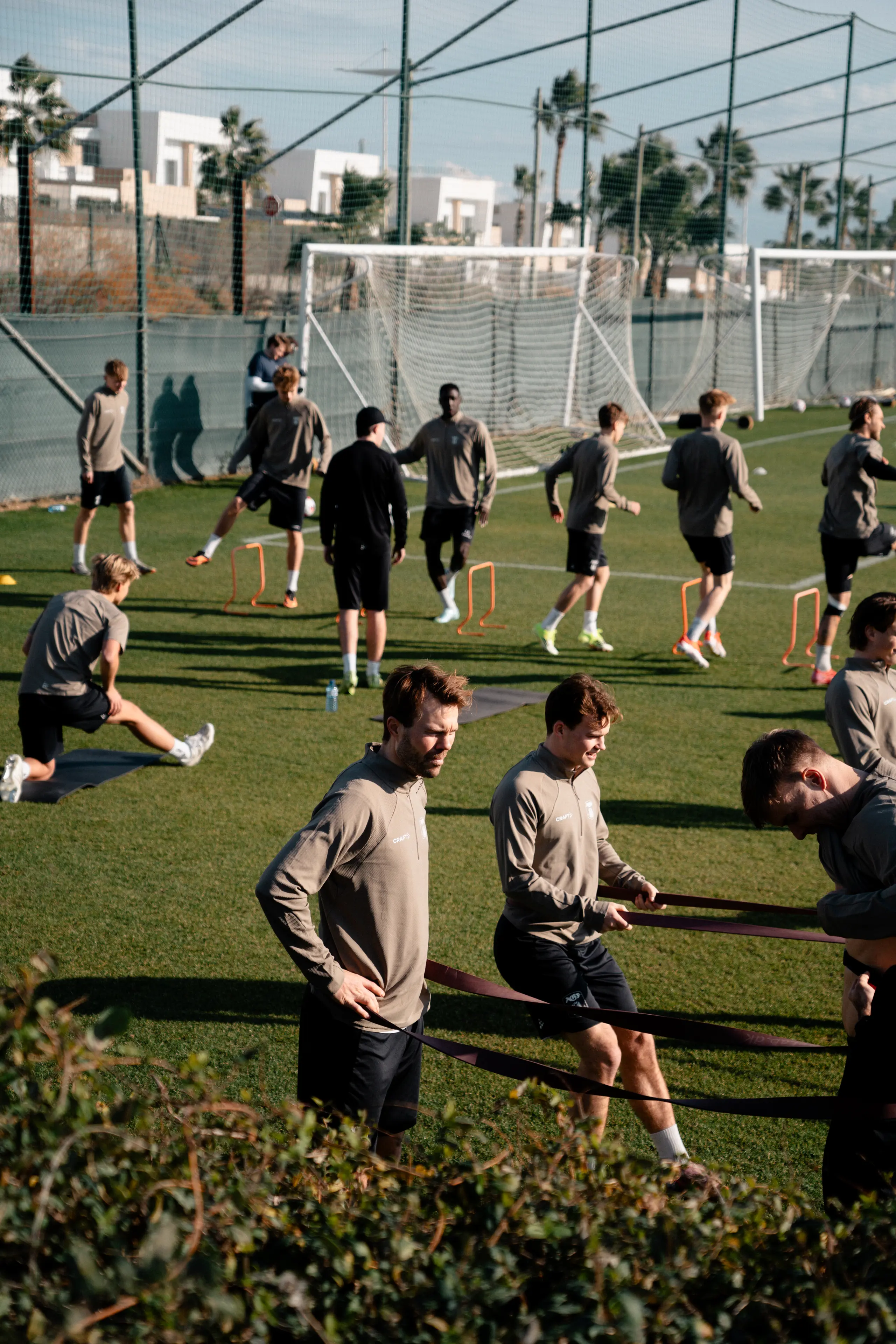 Superliga-truppens træningslejr er nu kommet godt i gang med de første træningssessioner i dag - søndag på banerne ved La Finca resortet, der ligger mellem byerne Alicante og Murcia i det sydlige Spanien, hvor der søndag har været sol og mere behagelige temperaturer end hjemme i Aarhus.