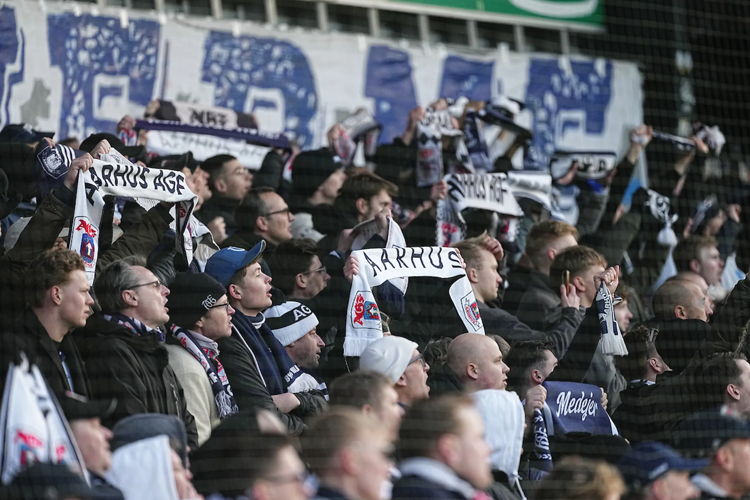 Men skuddet gik lige forbi mål i en positiv start fra AGF’erne som var målsøgende og energiske foran de mange medrejsende på den ene ende-tribune, der i kampens første 10 minutter også kunne se et godt skud fra Felix Beijmo, som blev blokeret.
