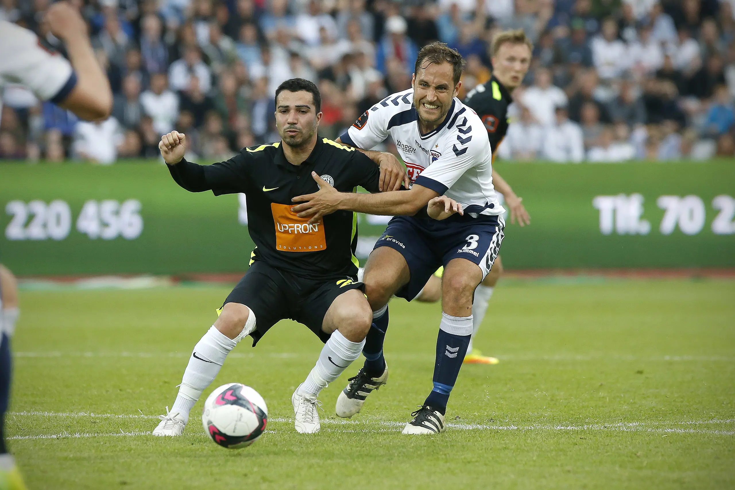 Hjemmeholdet fik i tillægstidens sidste minut et frispark på kanten af AGF-feltet, men skuddet blev blokeret, og det gav anledning til et sidste kontraangreb til AGF. Foran den hvide mur i udebaneafsnittet, kunne AGF'eren Peter Graulund sætte sidste fod på bolden og trille den i mål efter hans angrebskollega Aron Jóhannsson havde drevet den op og fandt Graulund foran mål.