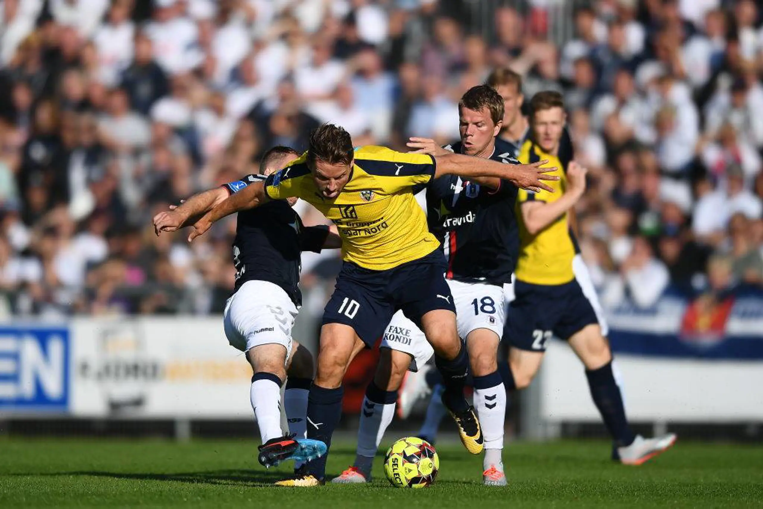 Også ude på bænken finder vi en tidligere AGF’er i skikkelse af Hobros cheftræner Jens Gjesing som spillede i AGF i 2000’erne og som tog over i Hobro IK i sommer efter han før var cheftræner i VSK Aarhus.